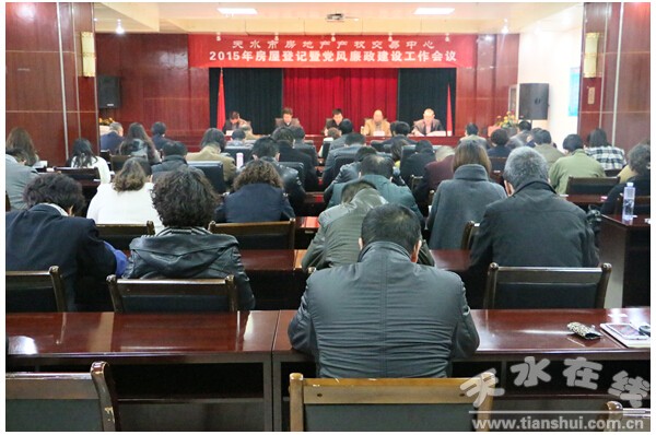 3月14日上午,天水市房地產(chǎn)產(chǎn)權(quán)交易管理服務(wù)中心召開了2015年度房屋登記暨黨風(fēng)廉政建設(shè)工作會(huì)議。會(huì)議回顧總結(jié)了2014年中心工作及黨風(fēng)廉政建設(shè)情況,安排部署了2015年各項(xiàng)工作,表彰了2014年度先進(jìn)工作者。市住房與城鄉(xiāng)建設(shè)局局長劉文璽出席會(huì)議并做重要講話。市房地產(chǎn)管理局黨組書記楊志剛出席會(huì)議并宣讀了2014年度表彰決定。市房地產(chǎn)管理局副局長兼房產(chǎn)交易中心主任趙振林作了2014年房屋登記工作報(bào)告。中心副主任楊志海作了2014年黨風(fēng)廉政建設(shè)工作報(bào)告。會(huì)議由中心副主任謝曉睿主持召開。