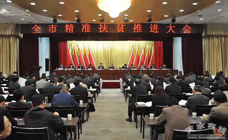 。4月17日上午,天水市委、市政府召開全市精準扶貧推進大會,貫徹落實中央和省委、省政府的部署要求,分析研判我市扶貧開發(fā)面臨的形勢,安排當前和今后一個時期的精準扶貧工作。)