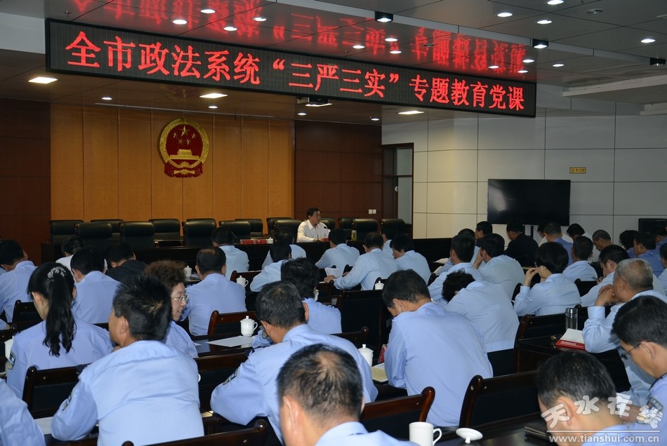 5月25日,全市政法系統(tǒng)舉辦“三嚴(yán)三實”專題教育黨課。市委常委、政法委書記趙衛(wèi)東作了輔導(dǎo)報告,并對全市政法系統(tǒng)開展專題教育進(jìn)行安排部署,要求全市政法系統(tǒng)深刻認(rèn)識開展“三嚴(yán)三實”專題教育的重大意義,緊密結(jié)合全市政法工作和政法隊伍建設(shè)實際,爭做踐行“三嚴(yán)三實”的表率。