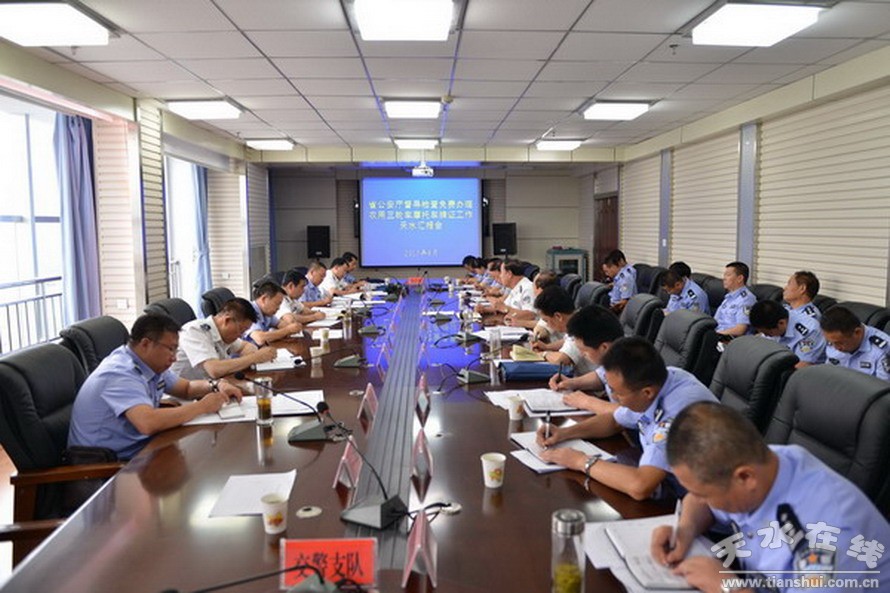 8月11日上午,省公安廳督導(dǎo)組在市公安局九樓會議室聽取了天水市免費(fèi)辦牌辦證工作進(jìn)展情況匯報(bào)。廳黨委委員、紀(jì)委書記李韻東,廳警務(wù)督察總隊(duì)副總隊(duì)長王煜翔,廳交管局副局長賈中平,廳交管局車管處處長王冠武等省公安廳領(lǐng)導(dǎo)出席了匯報(bào)會。市政府黨組成員、市公安局黨委書記、局長黃金奎,市公安局黨委副書記、常務(wù)副局長曹小明,市公安局黨委委員、紀(jì)委書記劉宗林,市公安局黨委委員、交警支隊(duì)支隊(duì)長楊金生等領(lǐng)導(dǎo),以及市公安局辦公、紀(jì)委、督察、治安、、交警等部門負(fù)責(zé)人和秦州、麥積兩區(qū)公安分局局長、交警大隊(duì)大隊(duì)長參加會議。 |