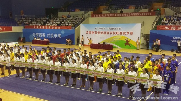 8月17日至21日,2015年全國體育傳統(tǒng)項目學校武術比賽在江蘇省南京市順利舉行,天水市10名運動員組成的甘肅省代表隊獲得了優(yōu)異成績,為我省贏得了榮譽。