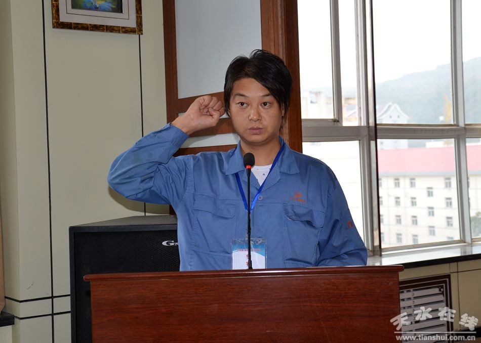 天水鍛壓機(jī)床有限公司焊工郭吉祥代表天水市第二屆職工職業(yè)技能運(yùn)動會參賽選手宣誓