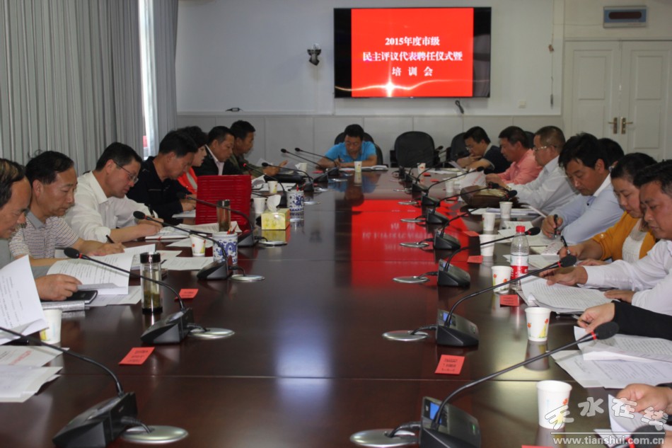 為充分發(fā)揮民主評議代表的社會監(jiān)督作用,進一步加強和改進政風行風和機關作風建設,有力促進民主評議政風行風和機關作風工作扎實有效開展。9月14日下午,天水市召開了2015年度市級民主評議代表聘任儀式暨培訓會。