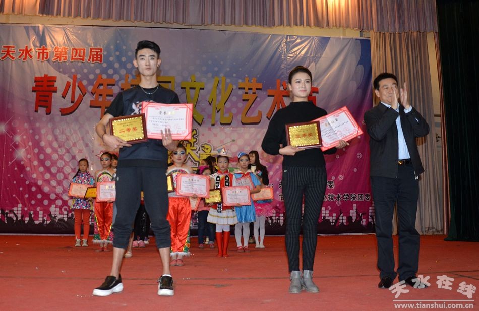 當(dāng)日,舉行了天水市第四屆青少年校園文化藝術(shù)節(jié)——舞蹈大賽決賽,比賽分青年組和少年組,各組共11個(gè)選手進(jìn)入決賽,經(jīng)過激烈比賽,對(duì)各組勝出的前三名進(jìn)行了獎(jiǎng)勵(lì)。