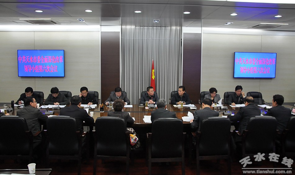 12月22日,天水市委書記、市委全面深化改革領導小組組長王銳主持召開市委全面深化改革領導小組第六次會議。王銳強調,全市各級各部門要認真貫徹落實黨的十八大和十八屆三中、四中、五中全會部署的改革舉措,按照“四個全面”戰(zhàn)略布局,堅持“創(chuàng)新、協(xié)調、綠色、開放、共享”發(fā)展理念,堅持問題導向,聚焦精準發(fā)力,突出完善制度,強化督查落實,確保各項改革取得預期成效。