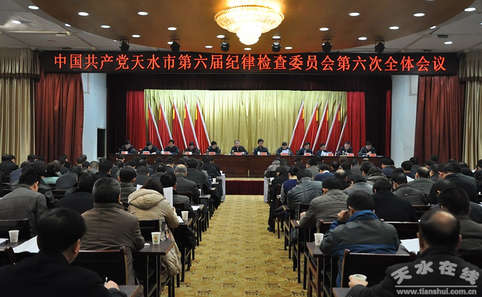 1月29日,中共天水市第六屆紀(jì)律檢查委員會第六次全體會議在市迎賓館召開,天水市委書記王銳出席會議并作講話,強調(diào)要全面深入貫徹黨的十八大和十八屆三中、四中、五中全會及習(xí)近平總書記系列重要講話精神,按照中央紀(jì)委和省委、省紀(jì)委的部署,保持堅強政治定力,堅持全面從嚴治黨、依規(guī)治黨,深入落實“3783”主體責(zé)任體系,忠誠履行黨章賦予的職責(zé),聚焦監(jiān)督執(zhí)紀(jì)問責(zé),深化標(biāo)本兼治,創(chuàng)新體制機制,完善制度體系,強化黨內(nèi)監(jiān)督,把紀(jì)律挺在前面,持之以恒落實中央八項規(guī)定、省委“雙十條”規(guī)定和市上“二十七條”意見精神,著力解決群眾身邊的不正之風(fēng)和腐敗問題,始終保持懲治腐敗高壓姿態(tài),建設(shè)忠誠干凈擔(dān)當(dāng)?shù)募o(jì)檢監(jiān)察隊伍,不斷取得黨風(fēng)廉政建設(shè)和反腐敗斗爭新成效。