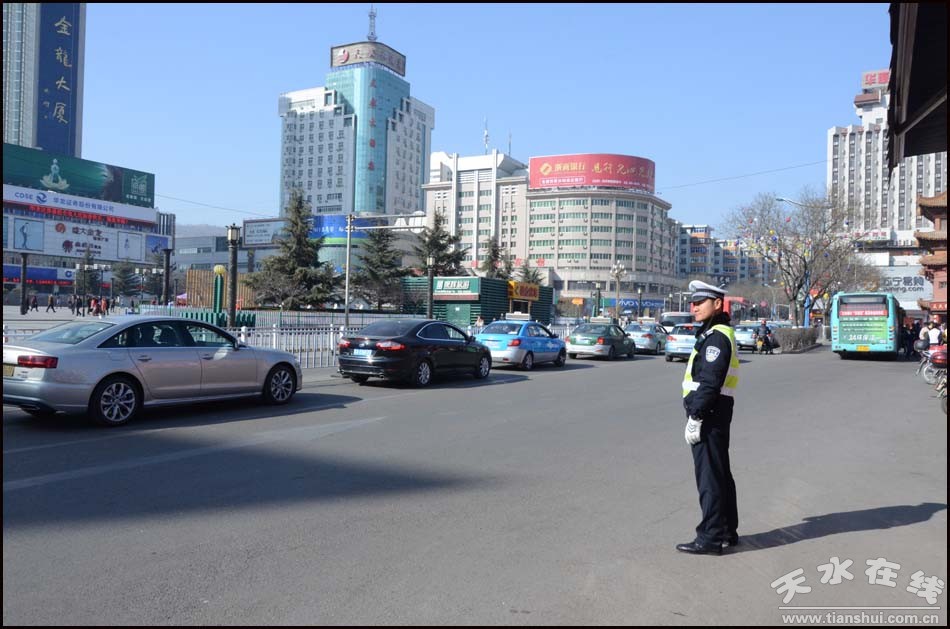 (圖為秦州公安分局城區(qū)交警大隊執(zhí)勤民警張國祥大年初一仍然堅守在崗位上)