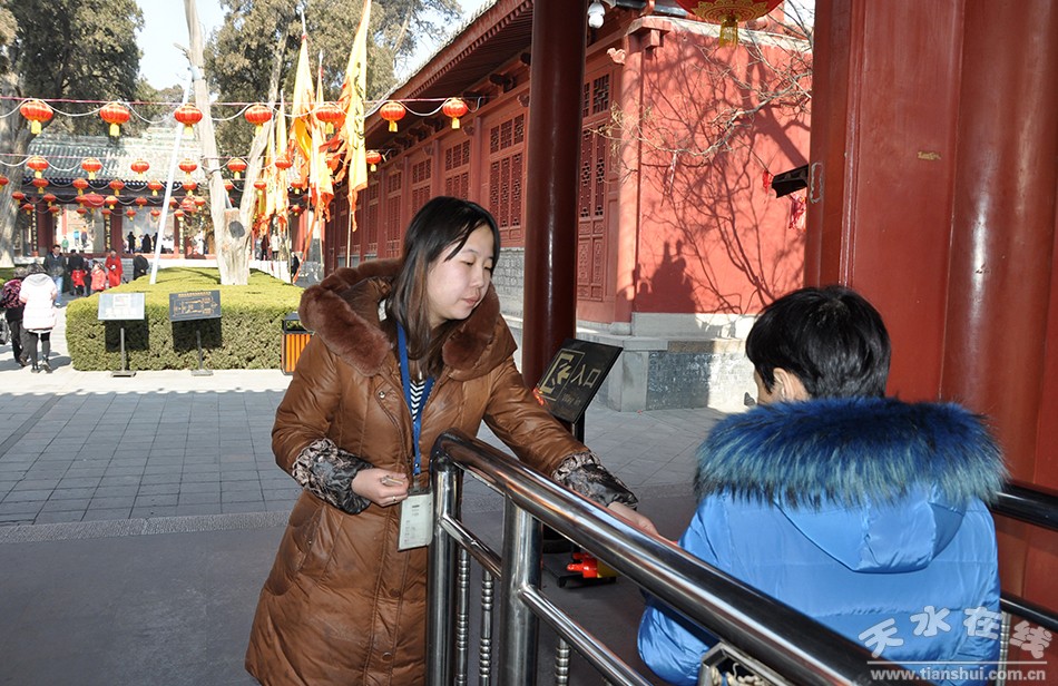 (圖為天水伏羲廟檢票員大年初一仍在工作)