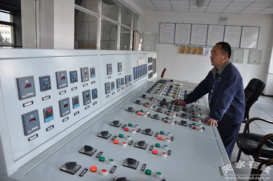 (天水市供熱公司慶華供熱站司爐工劉旭升大年初一在檢查操作臺運行是否正常)