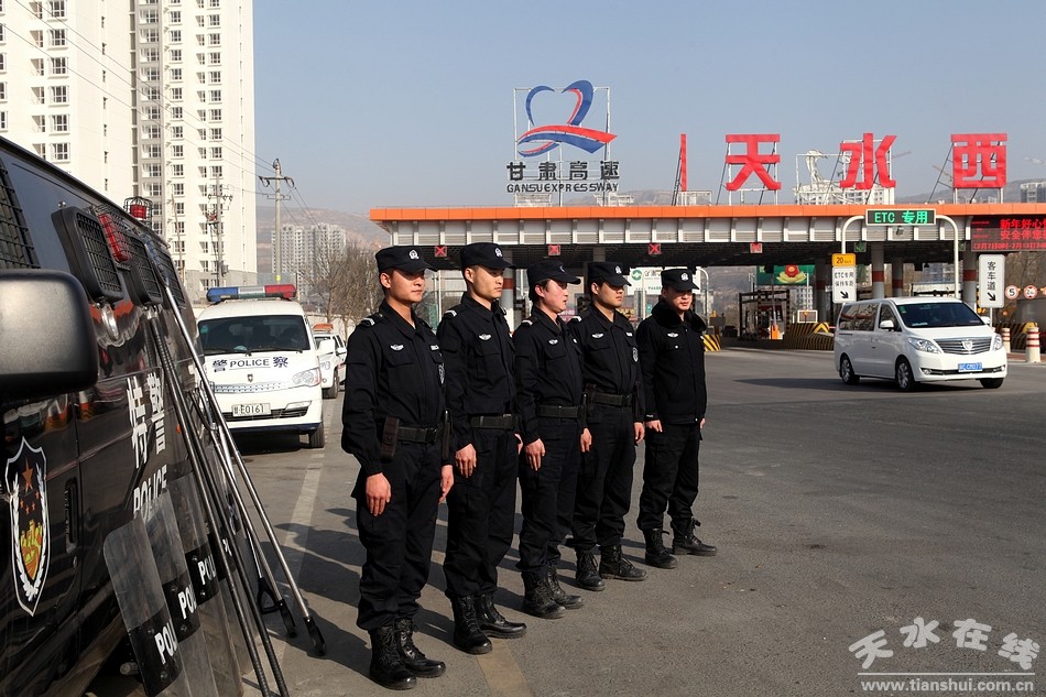 (天水市公安局反恐防暴特警支隊石杰、辛亮亮、草利君、胡玉潔、李文輝大年初一在天定高速天水西出入口執(zhí)勤)