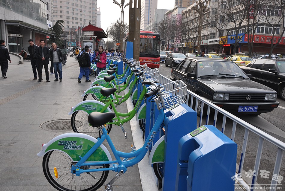 為進(jìn)一步完善市區(qū)綜合交通運(yùn)輸體系,推廣綠色公共交通,倡導(dǎo)市民改善出行方式,緩解城市交通壓力,市政府決定采用政府購(gòu)買服務(wù)模式,建設(shè)公共自行車交通系統(tǒng)項(xiàng)目,鼓勵(lì)市民利用公共自行車開展競(jìng)技、健身、旅游等多種活動(dòng),倡導(dǎo)綠色、低碳、生態(tài)、休閑的出行方式。該項(xiàng)目一期總投資350萬(wàn)元,在秦州、麥積兩區(qū)主城區(qū)居民、人流密集區(qū)域及各旅游景點(diǎn)建設(shè)公共自行車租賃服務(wù)網(wǎng)點(diǎn)54個(gè),投放1000輛公租自行車。項(xiàng)目從2月26日開工建設(shè),目前正在進(jìn)行設(shè)備安裝,計(jì)劃在今年5月底竣工投運(yùn)。