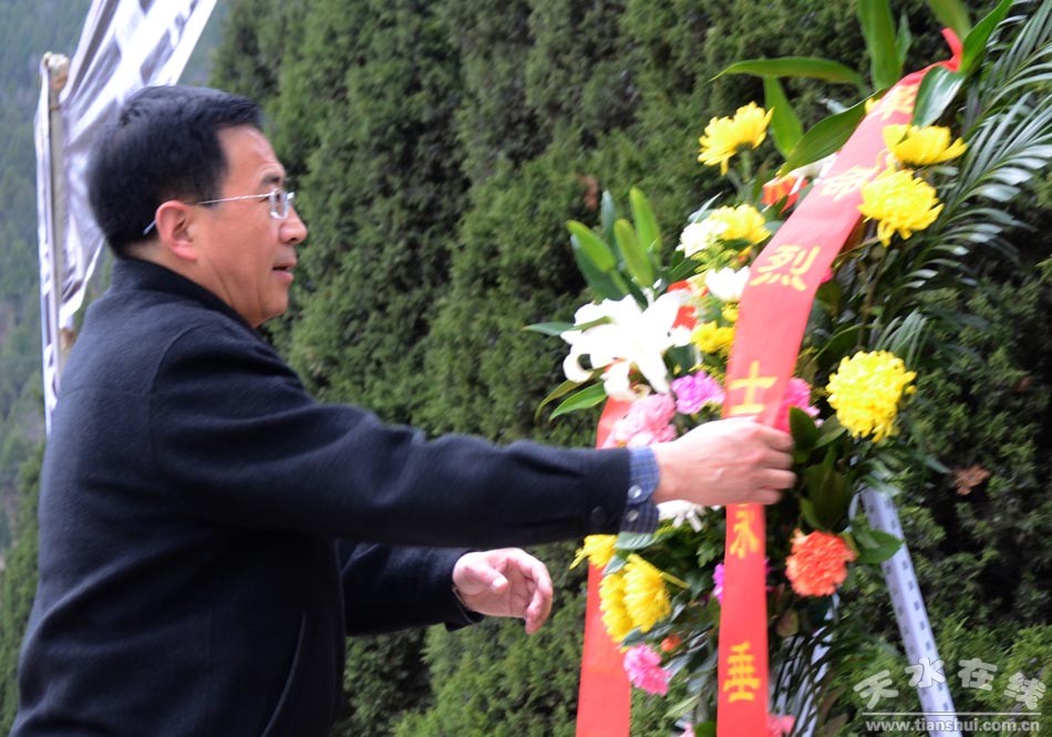 (天水市委組織部機(jī)關(guān)全體黨員向烈士陵園安眠的12名烈士敬獻(xiàn)花籃和鮮花)