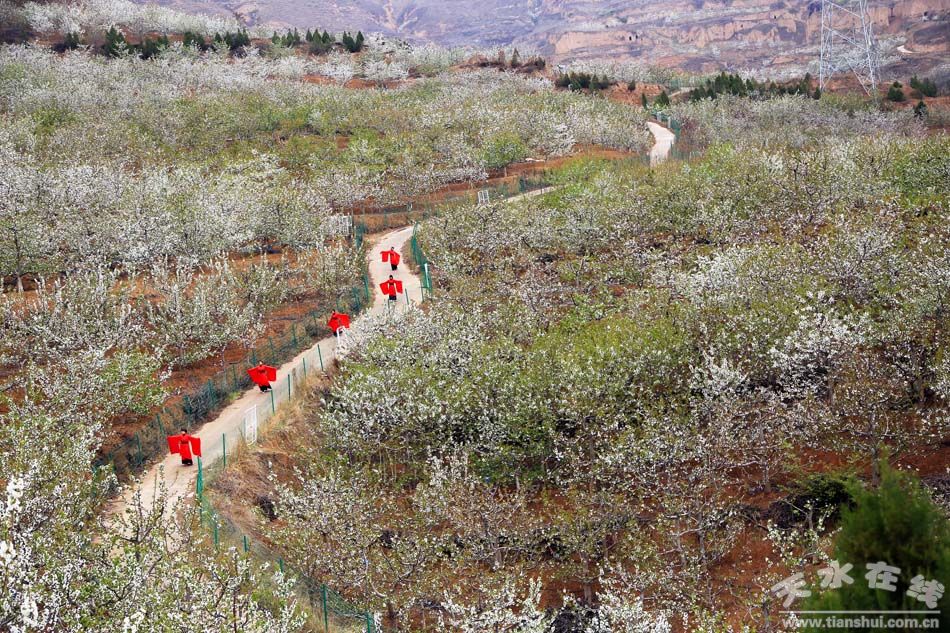 天水在線航拍煙鋪櫻桃花海