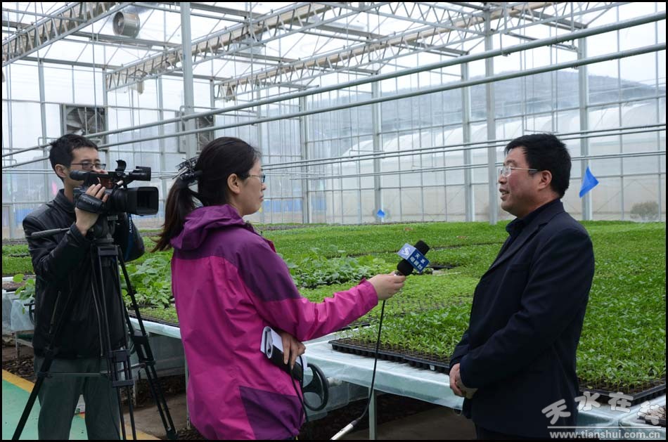 (育苗中心農(nóng)藝師田軍紅接受記者采訪)
