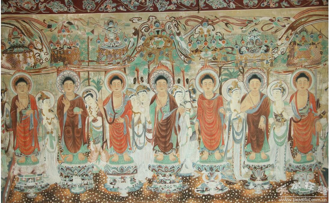 敦煌莫高窟,始建于十六國(guó)的前秦時(shí)期,歷經(jīng)十六國(guó)、北朝、隋、唐、五代、西夏、元等歷代的興建,形成巨大的規(guī)模,有洞窟735個(gè),壁畫4.5萬(wàn)平方米、泥質(zhì)彩塑2415尊,是世界上現(xiàn)存規(guī)模最大、內(nèi)容最豐富的佛教藝術(shù)地。
