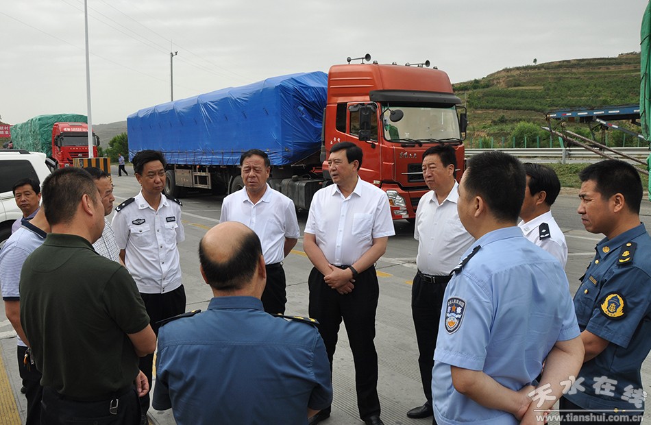 調(diào)研期間,趙衛(wèi)東一行現(xiàn)場(chǎng)查看了秦州隧道施工路段交通管制和運(yùn)行疏導(dǎo)情況,聽取了相關(guān)方面情況的匯報(bào),并與甘肅省天水公路管理局、甘肅省天水路政執(zhí)法處、甘肅省高速交警第四支隊(duì)、甘肅省交通建設(shè)集團(tuán)等單位相關(guān)負(fù)責(zé)人進(jìn)行了座談交流,就確保施工路段道路通暢和交通運(yùn)輸安全達(dá)成了共識(shí)。