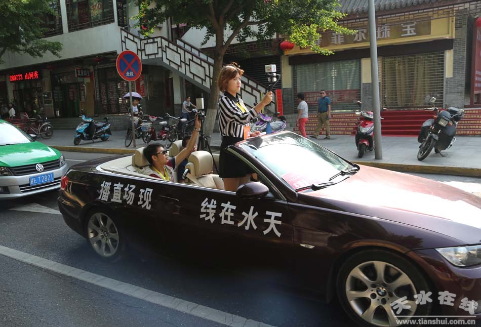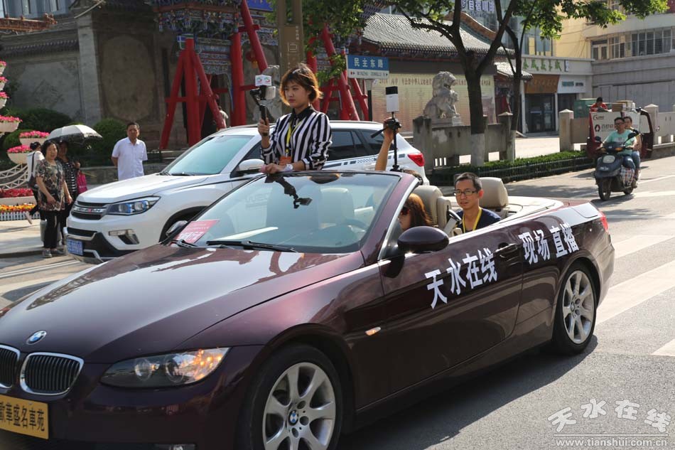 2016(丙申)年公祭中華人文始祖伏羲大典即將于6月22日在天水隆重舉行,為了全面展示天水城濃厚的“節(jié)會(huì)”氛圍和靚麗的城市美景,同時(shí),讓網(wǎng)民(微友)第一時(shí)間觀看“伏羲大典”預(yù)演實(shí)況,6月20日上午,天水在線云記者乘坐“歐華盛名車(chē)苑”友情支持的寶馬敞篷車(chē)輛,途徑青年北路、青年南路、藉河北路、合作路、民主東路、民主西路、龍城廣場(chǎng)、解放路,最后抵達(dá)伏羲廟東牌坊,對(duì)沿途街景進(jìn)行了現(xiàn)場(chǎng)直播,同時(shí)對(duì)“伏羲大典”預(yù)演情況進(jìn)行了全程現(xiàn)場(chǎng)直播 ,上萬(wàn)網(wǎng)友通過(guò)電腦和手機(jī)觀看了現(xiàn)場(chǎng)直播。