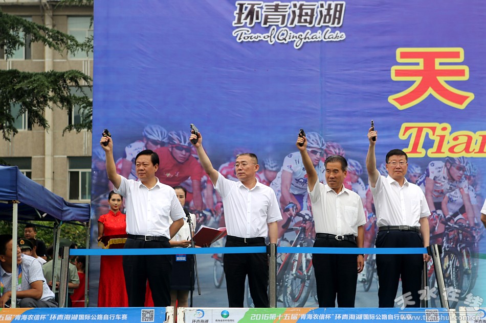 天水市委書(shū)記王銳,市人大常委會(huì)主任柴金祥,市委副書(shū)記、市長(zhǎng)楊維俊,市委副書(shū)記、市政協(xié)主席宋尚有共同為比賽鳴槍發(fā)令。市委常委、宣傳部長(zhǎng)王正茂主持發(fā)車(chē)儀式。
