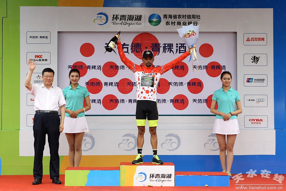 ▲天水市委書(shū)記王銳為個(gè)人總成績(jī)領(lǐng)先者——烏克蘭科爾斯車(chē)隊(duì)的維塔利·布茨頒發(fā)黃衫。