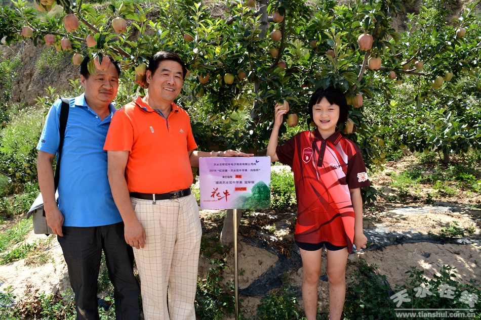 7月31日,麥積區(qū)三陽川遼闊的原野一片翠綠,滿山蔥蘢的蘋果樹枝頭綴滿紅燦燦的蘋果,在夏日的驕陽里拔節(jié)瘋長。這片孕育著豐收果實的蘋果種植基地,迎來了一群來頭不小的乒壇小將,他們是剛從第37屆 “向陽杯”全國少兒乒乓球比賽中斬獲冠軍的未來之星,這些小神童將與天水的花蘋果來一次特殊的儀式——認(rèn)領(lǐng)以他們名字命名的蘋果樹,以銘記這次意義非凡的比賽。