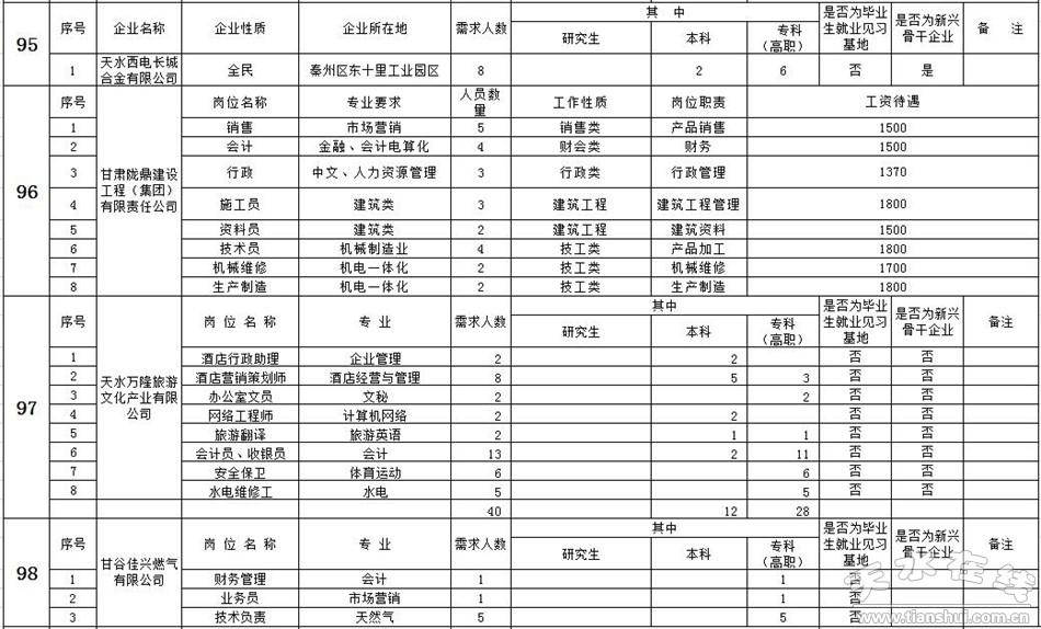 天水市2016年高校畢業(yè)生到企業(yè)服務(wù)招聘會公告