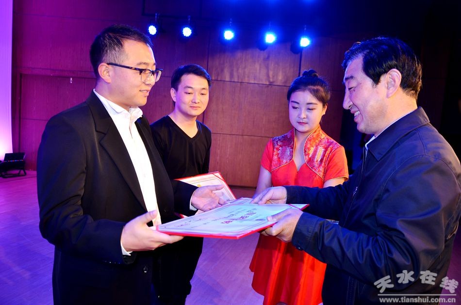 10月15日晚,天水首屆“羲皇杯音樂(lè)獎(jiǎng)”聲樂(lè)大賽頒獎(jiǎng)晚會(huì)在天水師院舉行,副市長(zhǎng)霍衛(wèi)平出席頒獎(jiǎng)晚會(huì)并為獲獎(jiǎng)選手頒獎(jiǎng)。