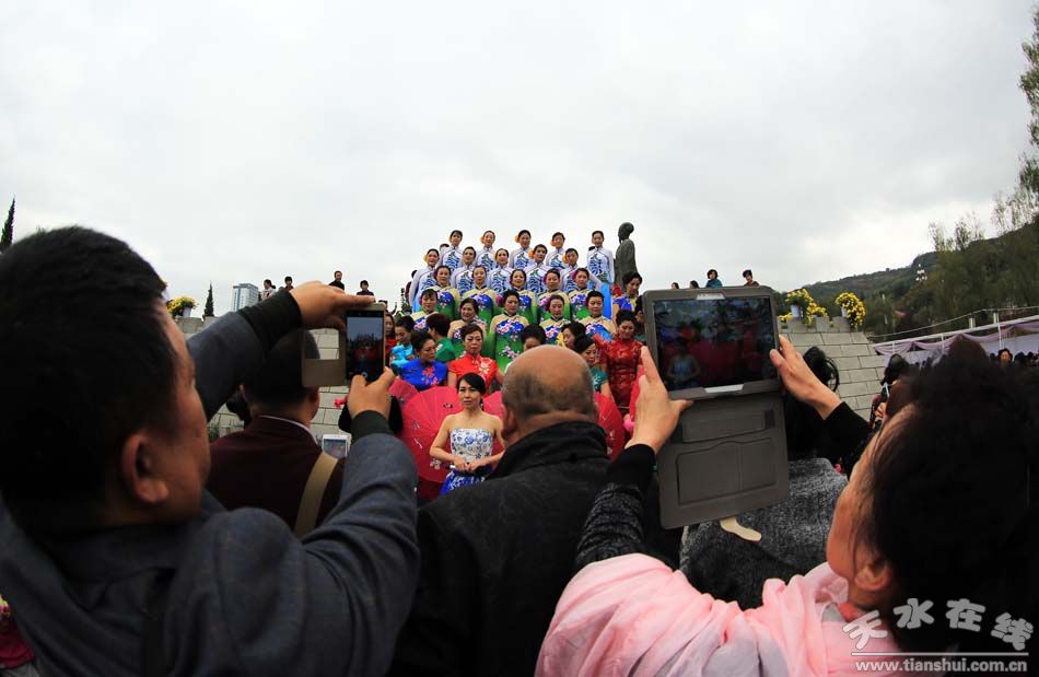 10月23日,2016年秦州區(qū)主題菊展進(jìn)入第四天。由于是周日,且雨過天晴,諸葛軍壘迎來賞花高峰。當(dāng)日,有上萬人前來賞菊。更有賞菊走秀等文藝演出,吸引了眾人目光。