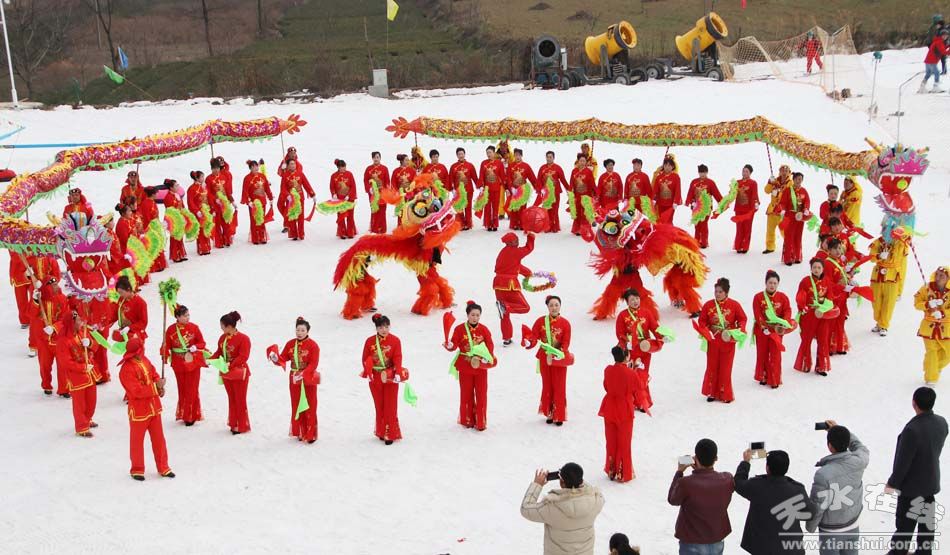 1月31日,農(nóng)歷大年初四,年味正濃,麥積山滑雪場人山人海。有大人、有小孩,有滑的、有看的、有摔交的,更有那麥積區(qū)紅崖村社火隊前來耍社火拜大年。怎一個熱鬧了得。