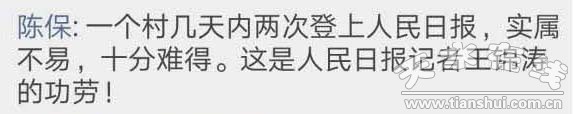 《人民日報(bào) 》(2017年02月02日)頭版頭條刊登了人民日報(bào)記者王錦濤的返鄉(xiāng)記《大坪村,變化大》,同時(shí),《人民日報(bào) 》(2017年01月28日)4版刊登了人民日報(bào)記者王錦濤采寫的《秦腔吼出新年景》的文章。兩篇文章分別描寫了王錦濤春節(jié)返鄉(xiāng)期間對家鄉(xiāng)大坪村的所見所聞及自己的親身感受,在天水引起了強(qiáng)烈反響,大家紛紛為家鄉(xiāng)登上《 人民日報(bào) 》感到驕傲。