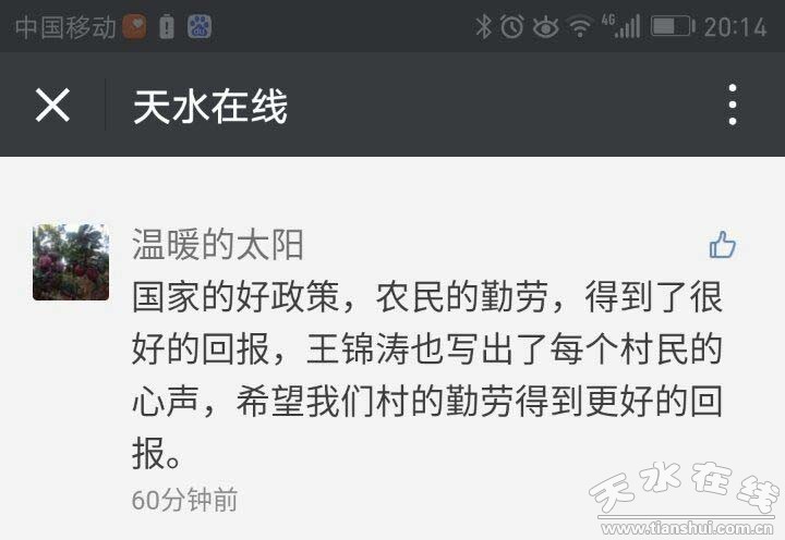 雞年新春大吉大利,雞年日子紅紅火火。就在今年春節(jié)期間,天水市麥積區(qū)石佛鎮(zhèn)大坪村因?yàn)椤洞笃捍,變化大?登上了人民日報(bào)頭版頭條,讓天水人民感到十分自豪。大坪村,這個(gè)普通的小村落無疑也成了天水人春節(jié)假期中最為關(guān)注的網(wǎng)絡(luò)熱點(diǎn)。文章的作者,人民日報(bào)記者王錦濤,也是土生土長的大坪村娃娃。聽說王錦濤還在村上,天水在線第一時(shí)間走進(jìn)大坪村,對這位天水的“山里娃”進(jìn)行專訪。