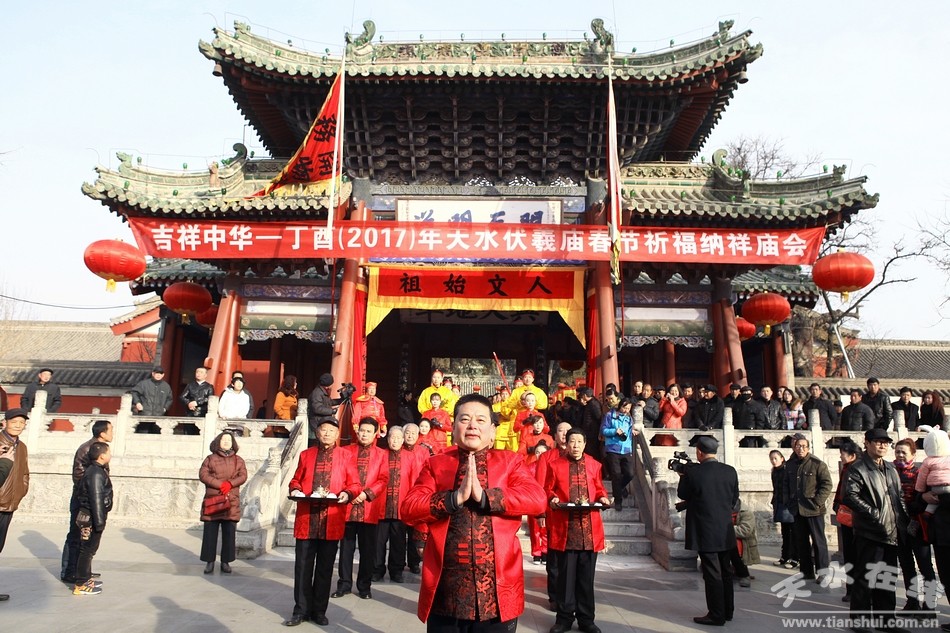農歷正月十六是人文始祖伏羲的誕辰,依托伏羲誕辰舉行的太昊伏羲祭典是我市一項重要的國家級非物質文化遺產。2月9日(正月十三)至2月12日(正月十六),我市隆重舉行“吉祥中華——丁酉(2017)年天水伏羲廟春祭伏羲”活動;顒拥呐e辦,不僅大力弘揚了伏羲文化,也有效保護和傳承了“太昊伏羲祭典”這一非物質文化遺產。