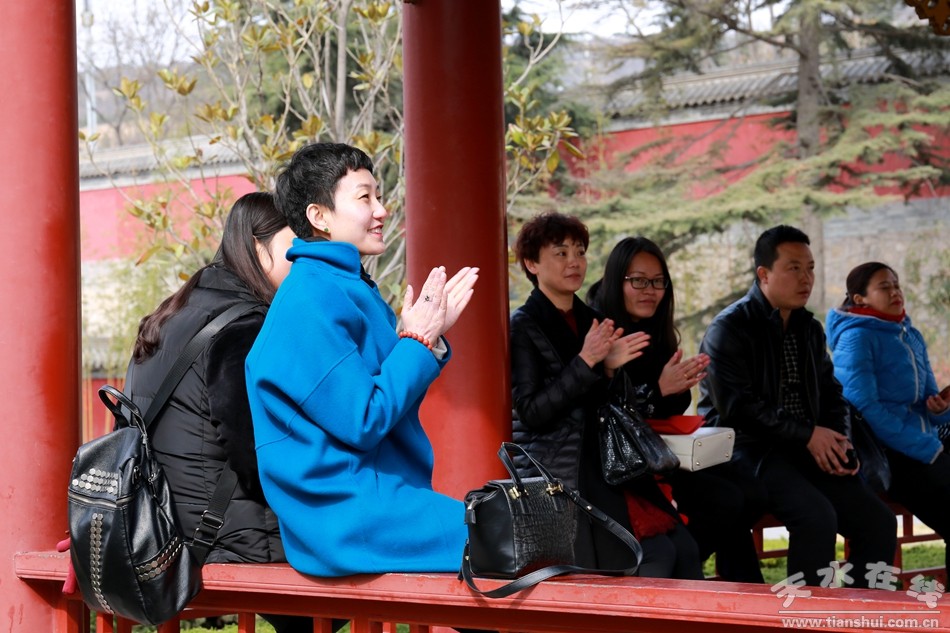 活動中,會員們先后參觀了伏羲廟及天水博物館,深入了解了家鄉(xiāng)天水8000多年的悠久歷史,追思華夏民族遙遠(yuǎn)輝煌的歷史,懷念人文始祖肇啟中華文明的豐功偉績,受到了一次深刻的傳統(tǒng)文化教育。在隨后開展的聯(lián)誼活動上,76歲高齡的民建女會員、原副主委李保榮以一曲《我愛你中國》為活動拉開了序幕,年輕女會員王芳為大家飽含深情的朗誦了《奶奶的家的門和院墻》,展現(xiàn)了老一輩民建會員的優(yōu)秀品質(zhì);女會員趙晶、王文麗為大家演唱了歌曲《夢里水鄉(xiāng)》,為全市女會員送去誠摯的祝福;女會員周萍演唱了《祖國萬歲》,老會員劉彩鳳清唱了《美麗的草原我的家》和《我和草原有個約定》,嗓音高亢,悠揚(yáng)動聽,贏得大家熱烈的掌聲。聯(lián)誼會現(xiàn)場歡聲笑語,掌聲雷鳴,其樂融融的氣氛將慶三八聯(lián)誼活動推向了高潮。