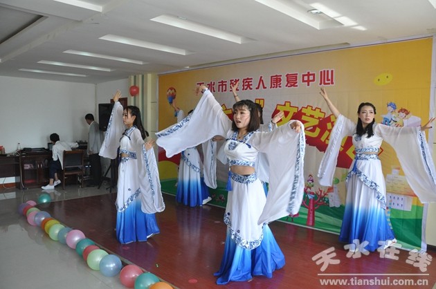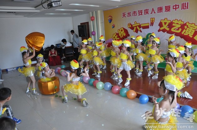 聽力中心的孩子們表演了舞蹈、詩朗誦、兒歌聯(lián)唱等精彩的文藝節(jié)目,展示了聽力語言康復(fù)訓(xùn)練的成果。殘疾人工作者、家長也紛紛登臺獻(xiàn)藝,解放路幼兒園、天水睿爾斯幼兒園的40名小朋友表演了舞蹈《小腳丫》、《小雞也瘋狂》。