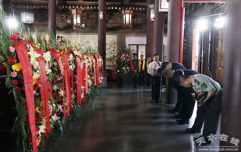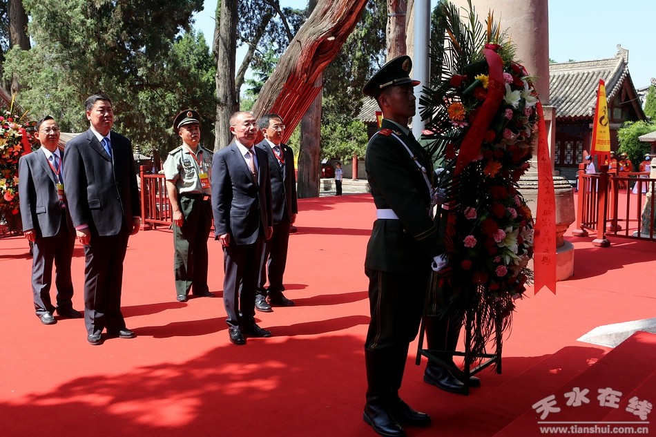 6月22日上午,2017(丁酉)年公祭伏羲大典在伏羲廟舉行。天水市委書記王銳,市人大常委會(huì)主任王光慶,市委副書記、代市長王軍,市政協(xié)副主席王振宇,天水軍分區(qū)政委袁敬偉代表天水380萬人民向伏羲圣像敬獻(xiàn)花籃。