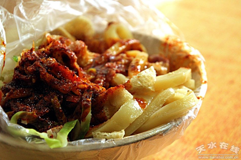 ▲外地游客到天水最喜歡吃的美食是酸辣里脊