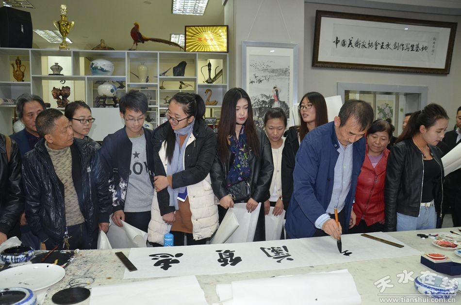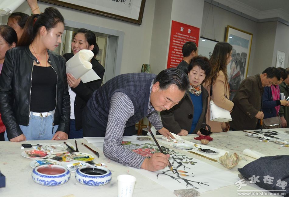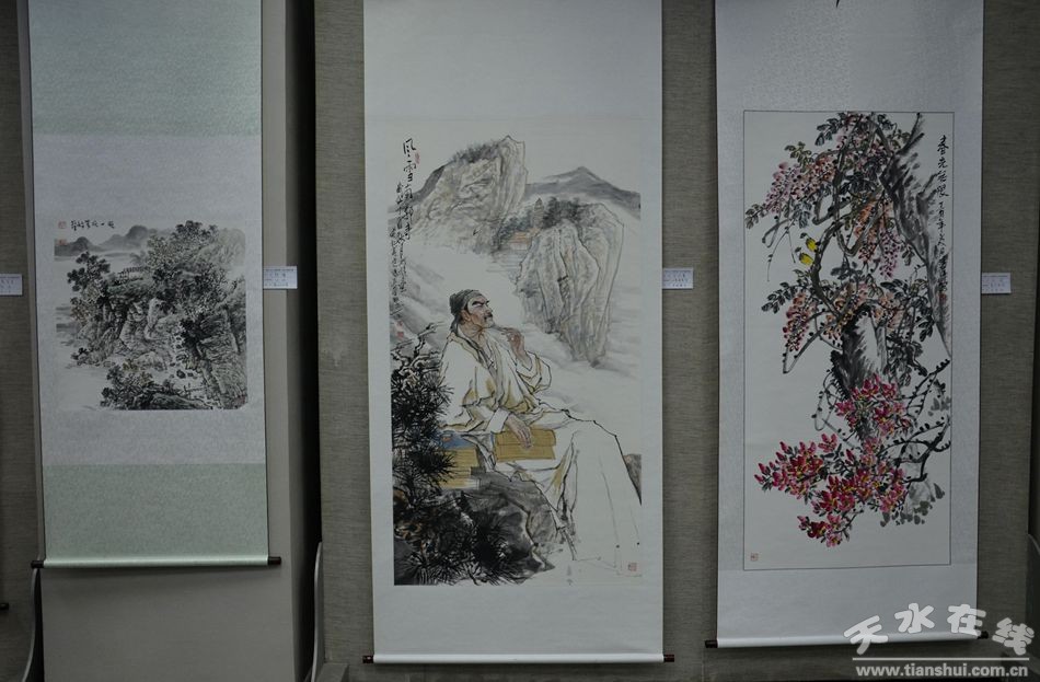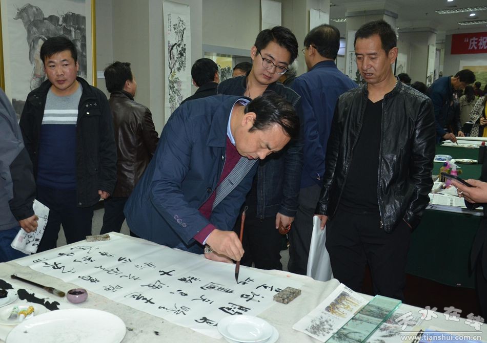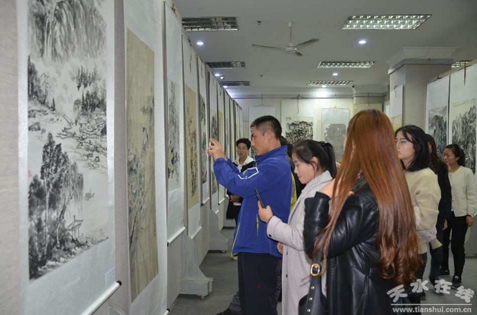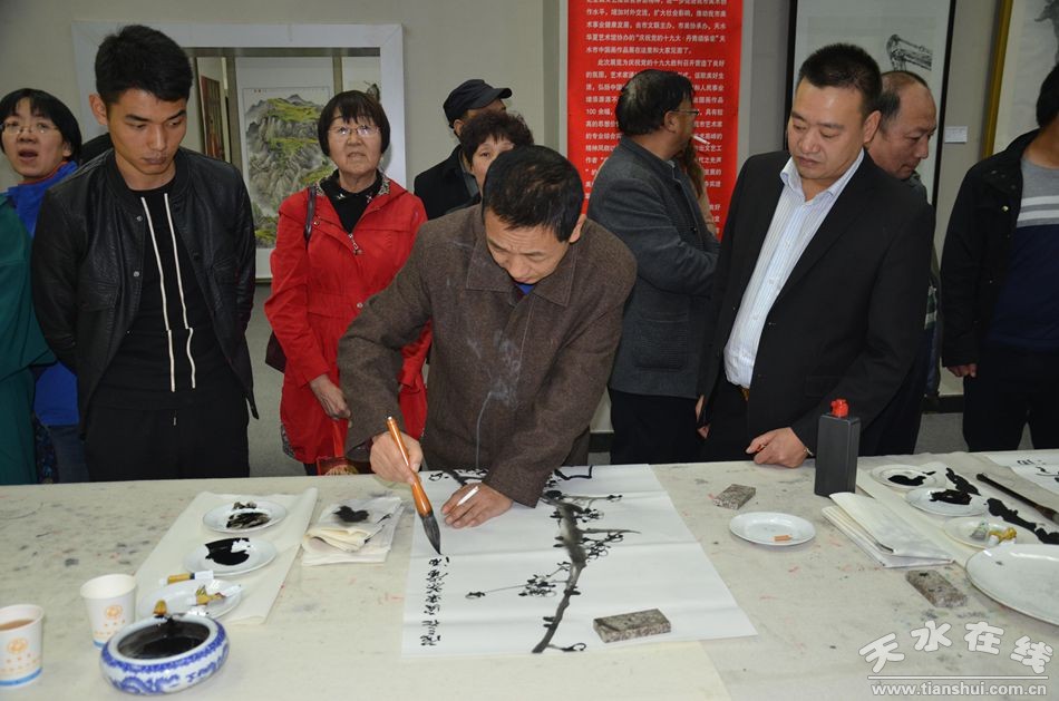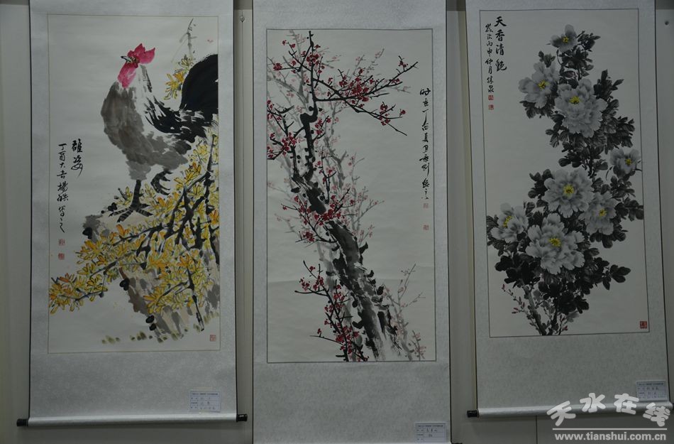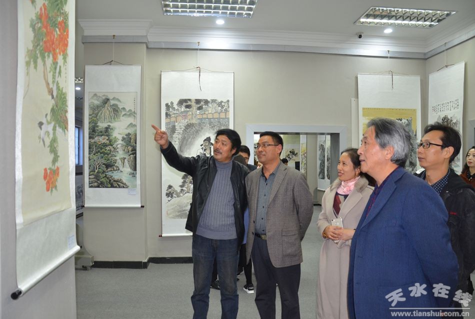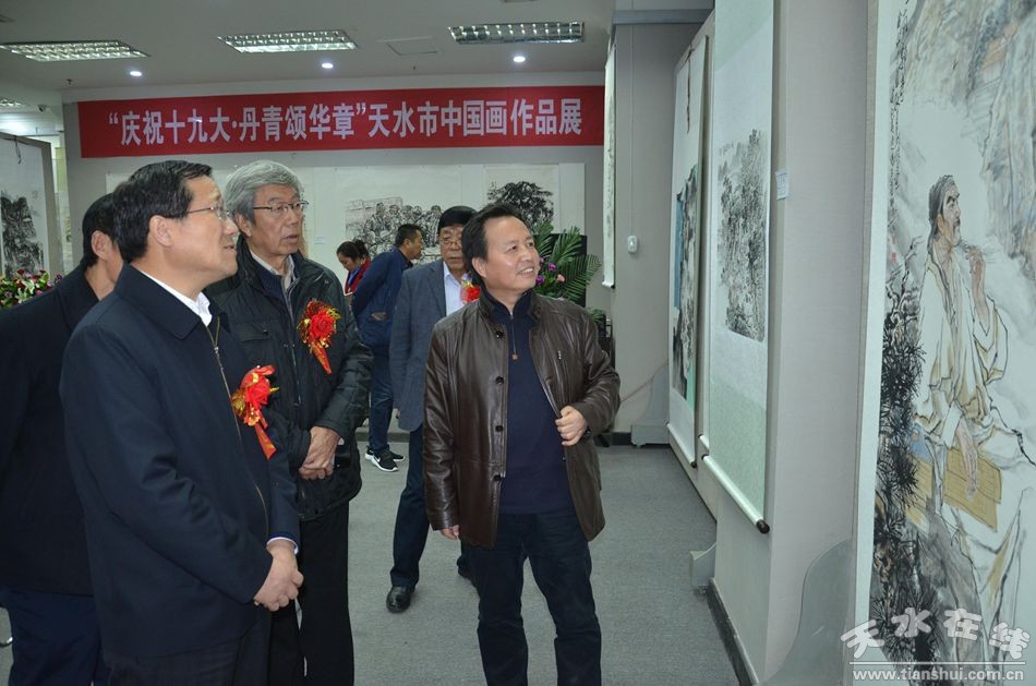 10月18日,適逢黨的十九大勝利召開之日,由天水市文聯(lián)主辦,市美協(xié)承辦,天水市華夏藝術(shù)館協(xié)辦的“慶祝十九大,丹青頌華章”天水市中國畫作品展在金龍大酒店三樓中國美協(xié)創(chuàng)作基地開展。市委常委、宣傳部長蒲軍,市人大常委會副主任蒲朝暉、蘇定武,市人大常委會原副主任鄧炎喜,市政府副秘書長、辦公室主任王永祥,市文化和旅游局局長仙松濤,市文聯(lián)主席王進文,天水師范學院美術(shù)學院院長、天水市美協(xié)主席賈利珠,金龍大酒店董事長、中國美協(xié)天水創(chuàng)作基地主任趙萬順等出席開幕式。