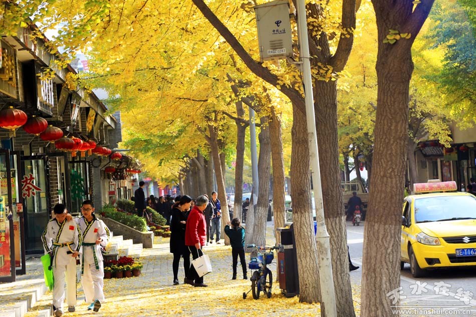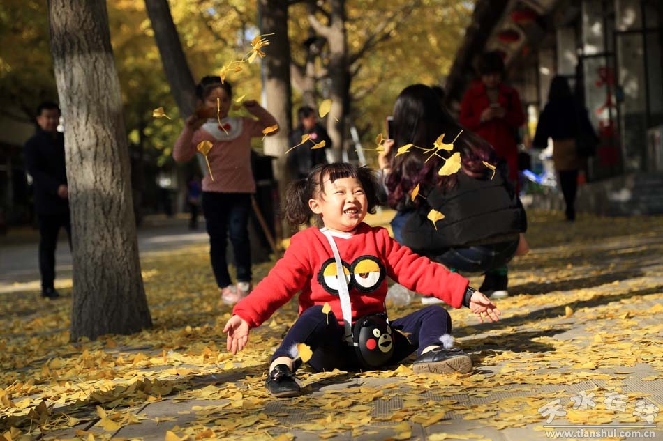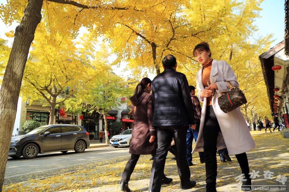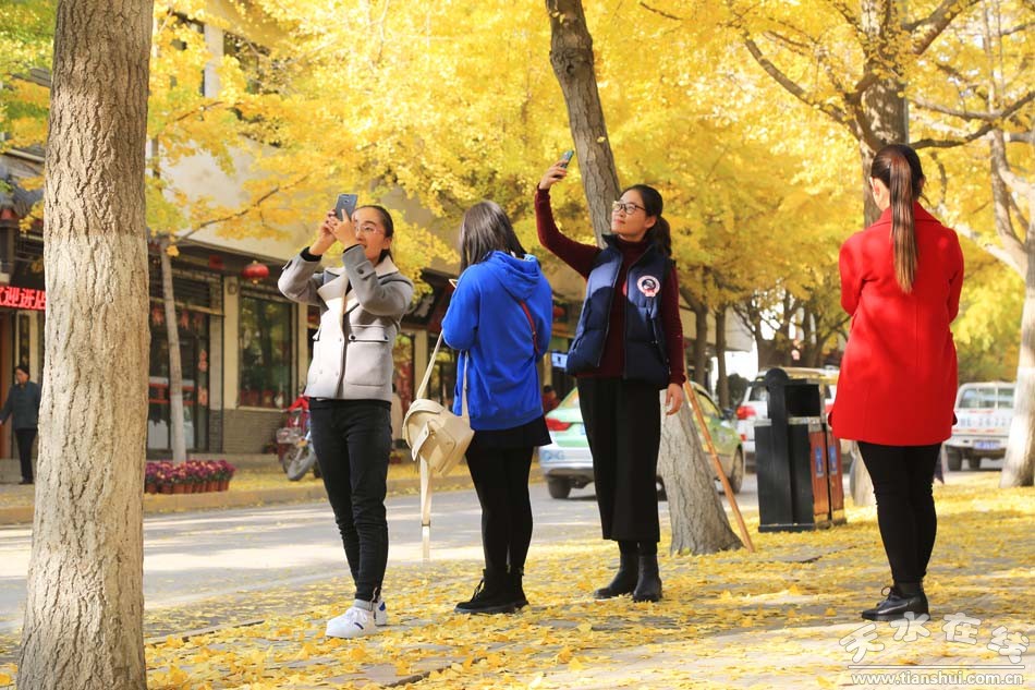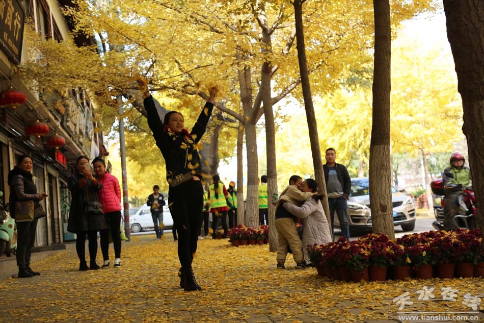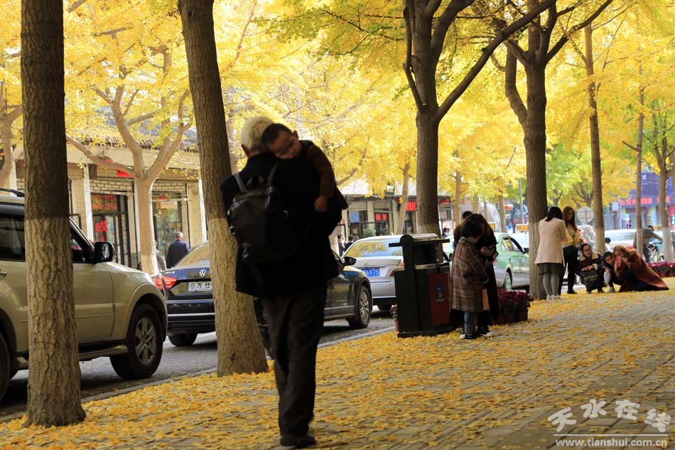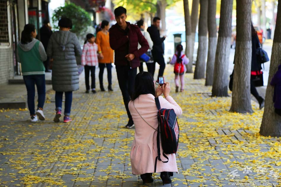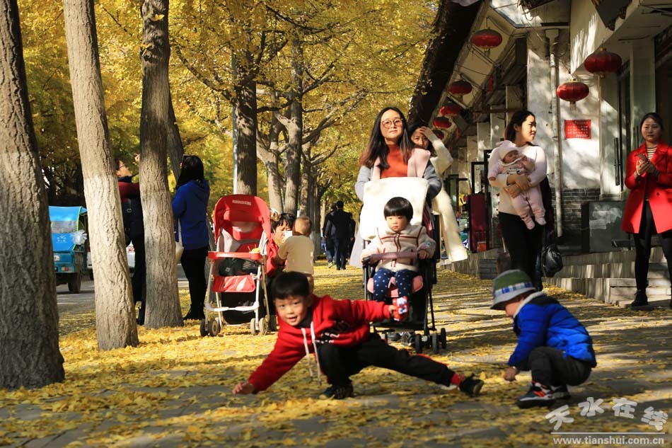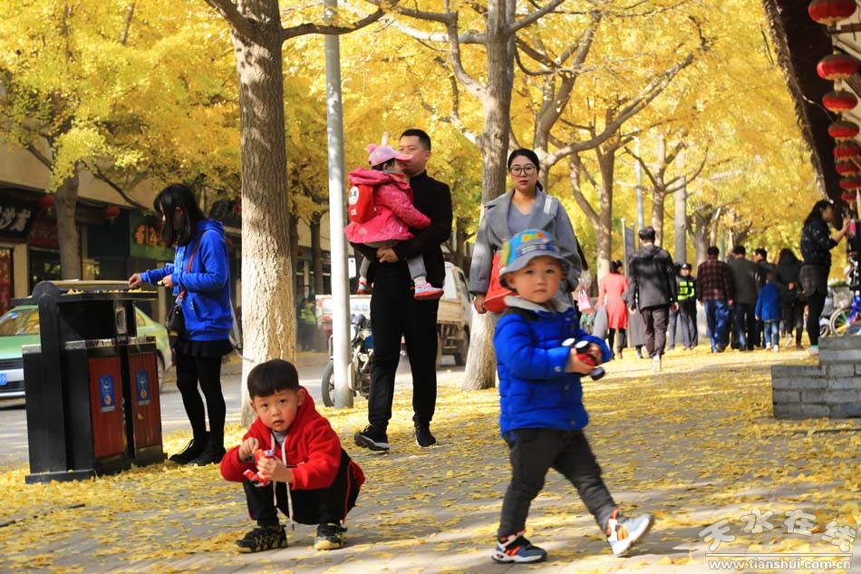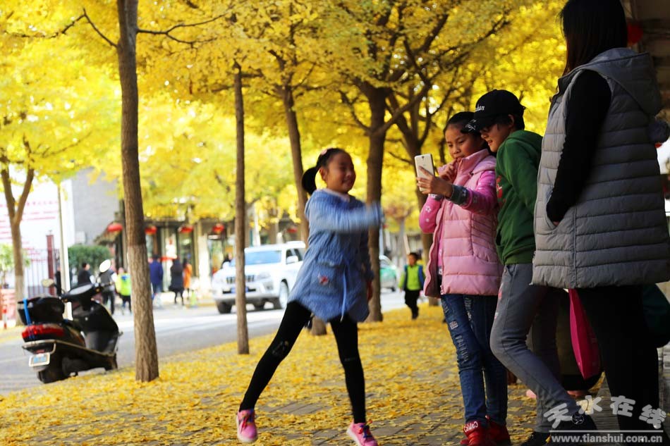 天水在線11月5日?qǐng)?bào)道 深秋時(shí)節(jié),天水市秦州區(qū)青年南北路的銀杏葉子已經(jīng)全部金黃,進(jìn)入一年中最美的時(shí)節(jié)。11月5日的青年南北路,落葉遍地,景美如畫。時(shí)值周日,市民紛紛來到這里,或駐足欣賞,或嬉戲玩樂,或攝影,或攝像,或自拍,真是美了美了,醉了醉了。