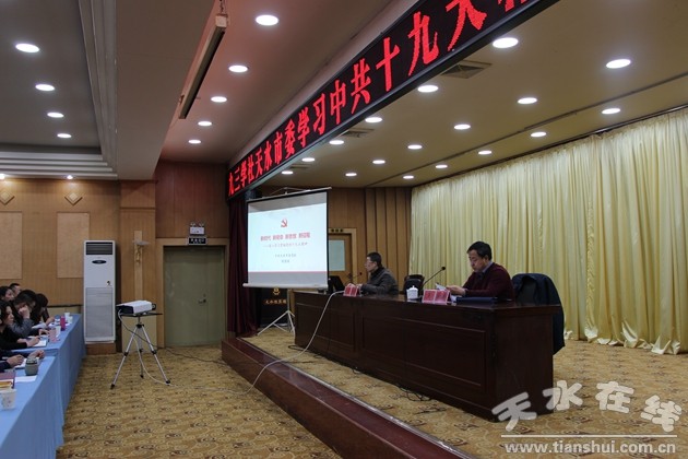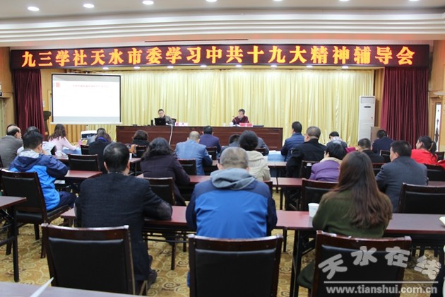 11月19日下午,九三學(xué)社天水市委在市迎賓館二樓會議室召開了學(xué)習(xí)中共十九大精神輔導(dǎo)會,會議邀請了市委講師團成員、中共天水市委黨校黨史與黨建研究室教授侯強強進行專題輔導(dǎo),社市委主委楊建新主持輔導(dǎo)會,社各基層組織負責(zé)人及社員約100人參加了會議。