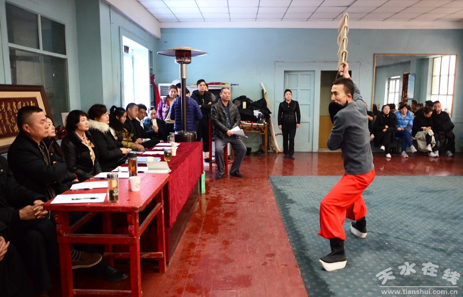 1月30日,天水市西秦腔研究院(原天水市秦劇團)2017年度業(yè)務(wù)匯報考核在光明劇院拉開大幕。包括演員隊、武樂隊、文樂隊、舞美隊在內(nèi)的全體業(yè)務(wù)人員,“唱”“念”“做”“打”比拼秦腔才藝。當日,匯報考核上演的年度秦腔大戲,精彩片段連連呈現(xiàn),堪比北影招考現(xiàn)場。