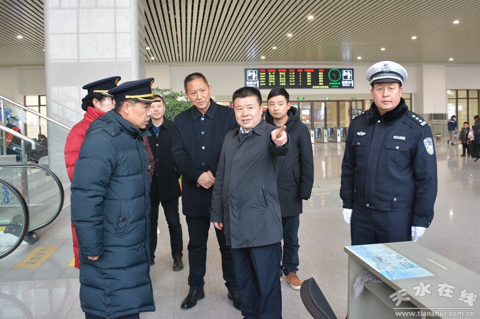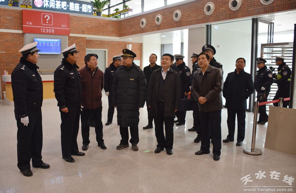 儀式結(jié)束后,郝文杰帶領(lǐng)有關(guān)單位負(fù)責(zé)人先后到天水南站、天水機(jī)場(chǎng)、天水火車站、天水汽車總站等地,對(duì)春運(yùn)工作開展情況進(jìn)行了督導(dǎo)檢查。