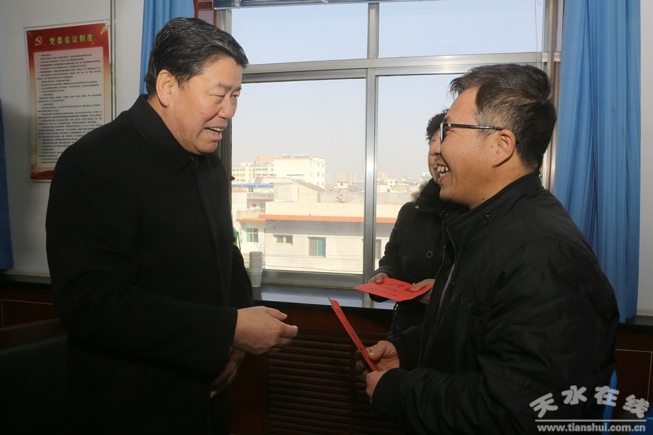 新春佳節(jié)即將到來,2月11日,市委副書記、市長王軍來到甘谷縣開展“送溫暖”慰問活動,看望慰問老黨員、道德模范、困難黨員和優(yōu)撫對象,為他們送去黨和政府的關(guān)懷,并致以新春的問候。