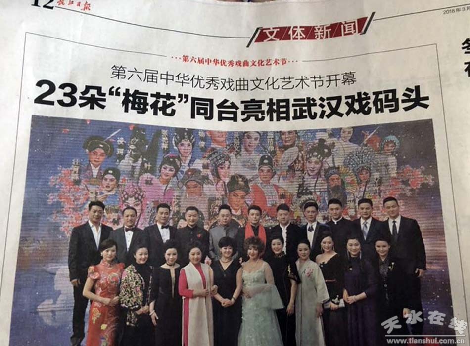 天水在線3月9日武漢綜合報(bào)道 3月9日,第六屆中華優(yōu)秀戲曲文化藝術(shù)節(jié)在武漢開(kāi)幕。天水市西秦腔研究院副院長(zhǎng)、第28屆中國(guó)戲劇梅花獎(jiǎng)得主袁丫丫應(yīng)邀出席開(kāi)幕儀式,與22朵“梅花”一起亮相紅毯,并在開(kāi)幕式群星演唱會(huì)上演出秦腔《王寶釧》選段。新華社、中新社、長(zhǎng)江日?qǐng)?bào)等各大媒體紛紛進(jìn)行報(bào)道。