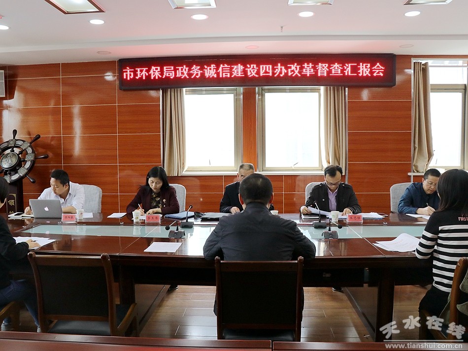 4月27日,天水市政府督察組對市環(huán)保局開展政務(wù)誠信建設(shè)年活動及貫徹落實“一窗辦一網(wǎng)辦簡化辦馬上辦”改革實施方案情況進(jìn)行了督察。