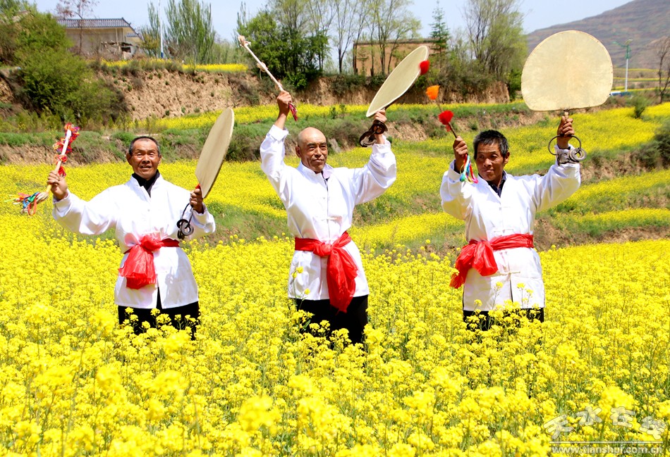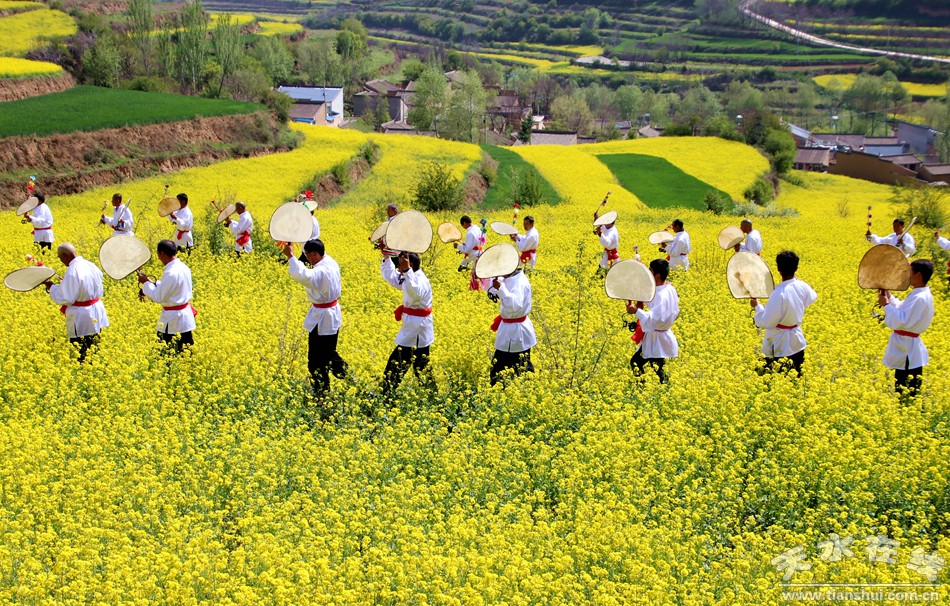 (旋鼓舞 天水在線5月2日攝于龍臺鎮(zhèn)大莊村油菜花田)