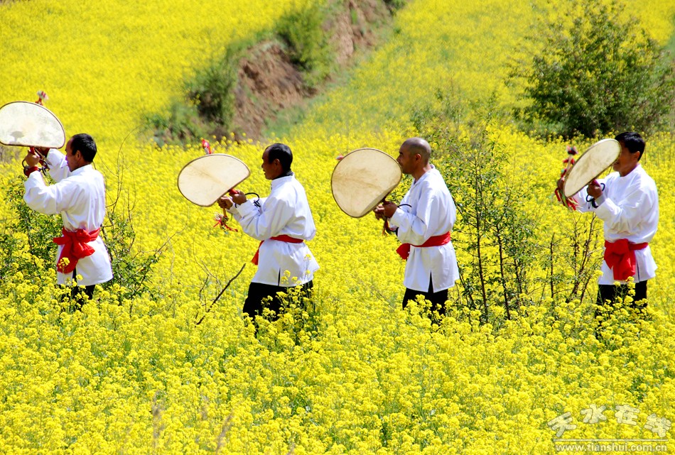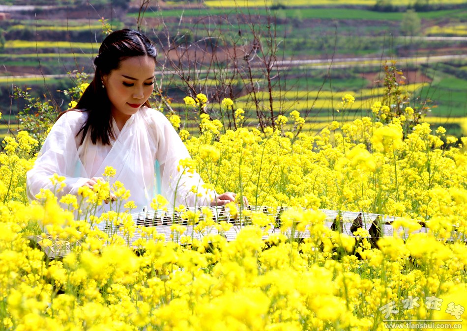 (琵琶表演 天水在線5月2日攝于龍臺鎮(zhèn)大莊村油菜花田)
