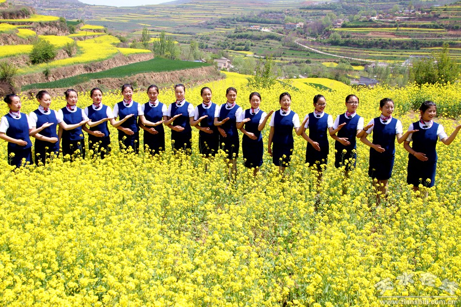 (合唱:《在希望的田野上》 天水在線5月2日攝于龍臺鎮(zhèn)大莊村油菜花田)