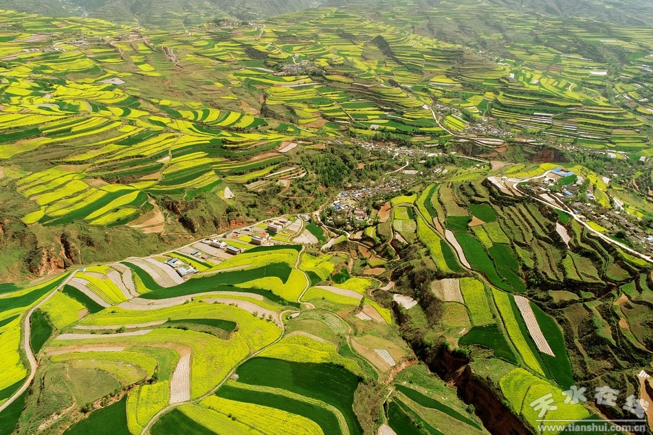 五月的武山,油菜花開滿山岡,美不勝收。5月2日,天水在線無人機航拍小組走進大美武山油菜花田核心區(qū)龍臺鎮(zhèn)大莊村、馬年村和灘歌鎮(zhèn)漆莊等村攝影采風,同時拍攝合唱快閃《在希望的田野上》。