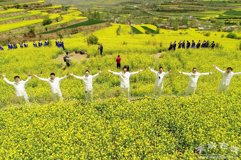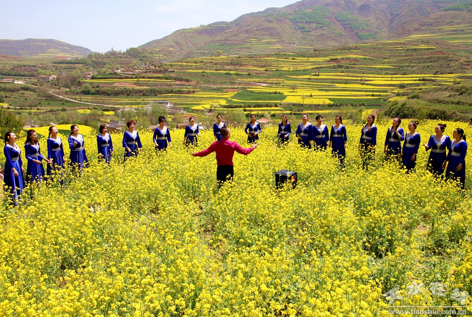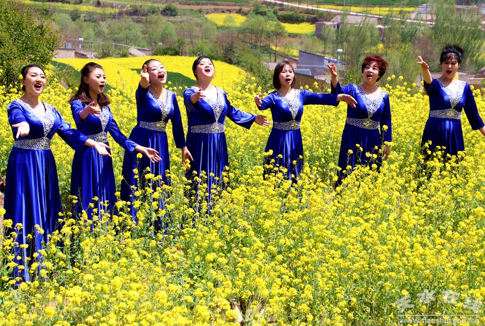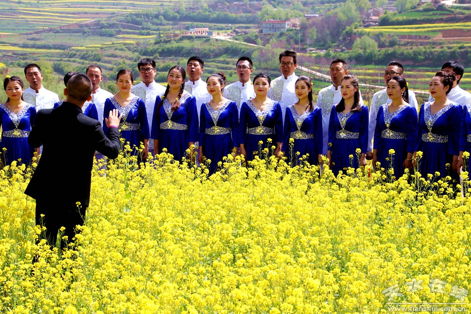 “我們的家鄉(xiāng),在希望的田野上,炊煙在新建的住房上飄蕩,小河在美麗的村莊旁流淌……”5月2日,由武山縣委宣傳部和天水在線(xiàn)策劃,武山璞玉留芳教師藝術(shù)團(tuán)在龍臺(tái)鎮(zhèn)大莊村的萬(wàn)畝金色的油菜花梯田里唱響《在希望的田野上》。