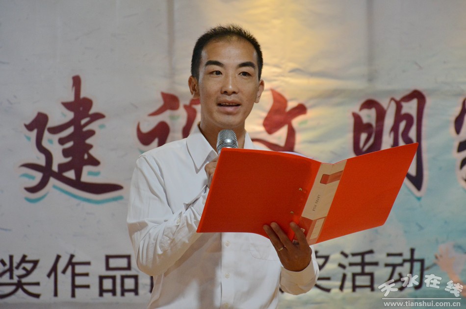 (天水市總工會(huì)經(jīng)審會(huì)主任張虎琴宣讀獲獎(jiǎng)作品名單)