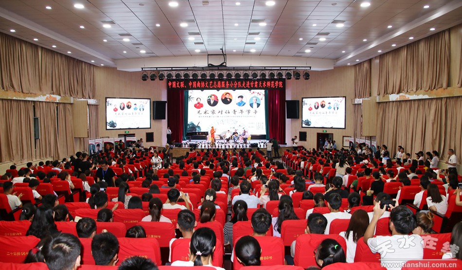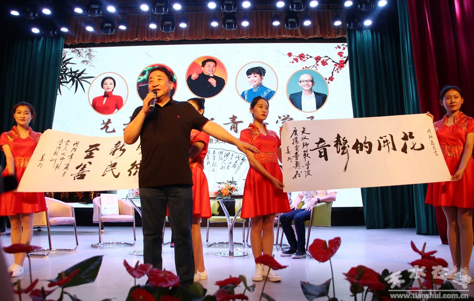 6月21日晚8點,由中國文聯(lián)、中國曲協(xié)主辦,甘肅省文聯(lián)、甘肅天水師范學(xué)院承辦的“藝術(shù)家對話青年學(xué)子——中國文聯(lián)中國曲協(xié)藝術(shù)家走進校園藝術(shù)講座”活動在天水師范學(xué)院大禮堂舉行。天水市人大常委會副主任王曉琴、市政協(xié)副主席郭明興出席講座。